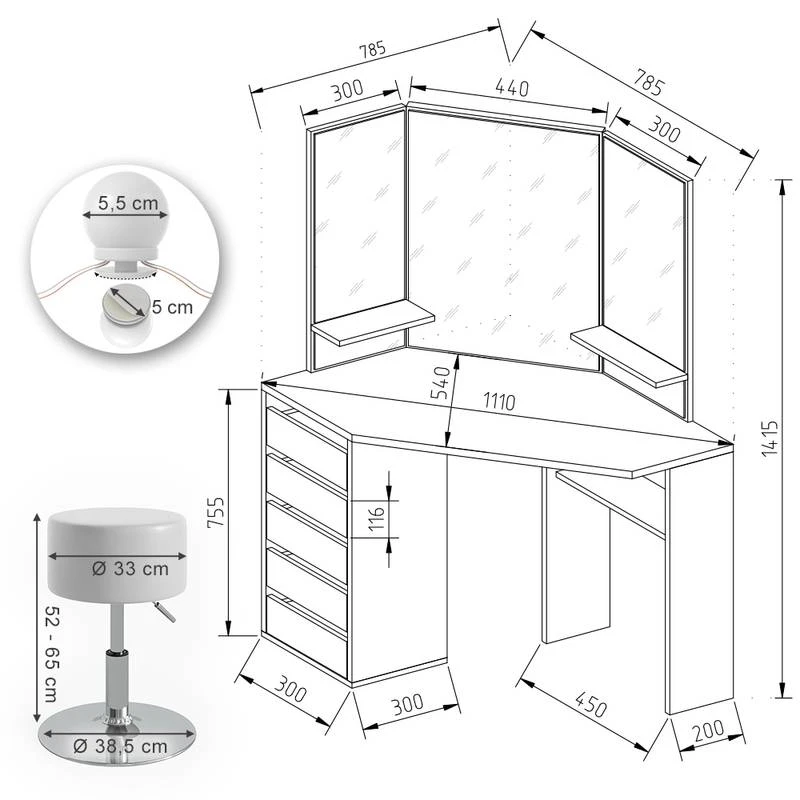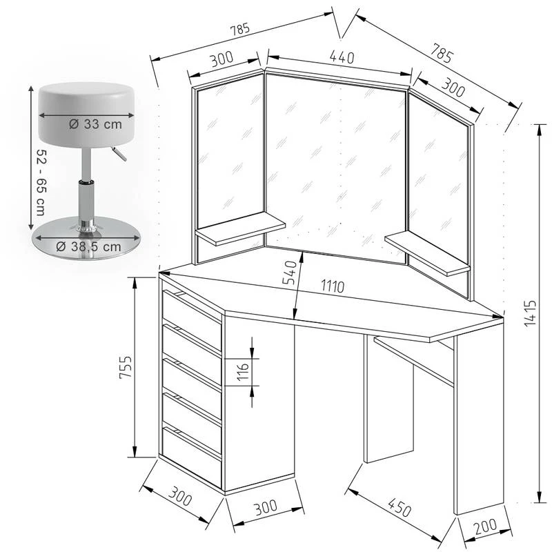 Coiffeuse D’angle Arielle Avec Tabouret